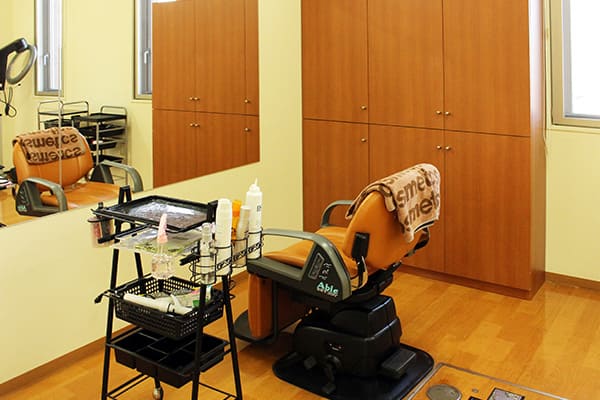 カット、パーマの他マッサージやエステも行っております。患者さんや職員、お付き添いの方へ癒しの空間を提供して参ります。