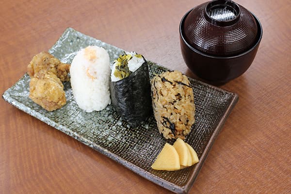 JAあぐり夢みなみの「おにぎり亭」では白河産米コシヒカリのおにぎりをシャケ、おかか他、ジャコマヨ、マヨタラコなど変わり種を含め、12種類の具材で、味わうことが出来ます。シンプルな塩むすびや、から揚げ、味噌汁、漬物がついたセットメニューもご用意しております。