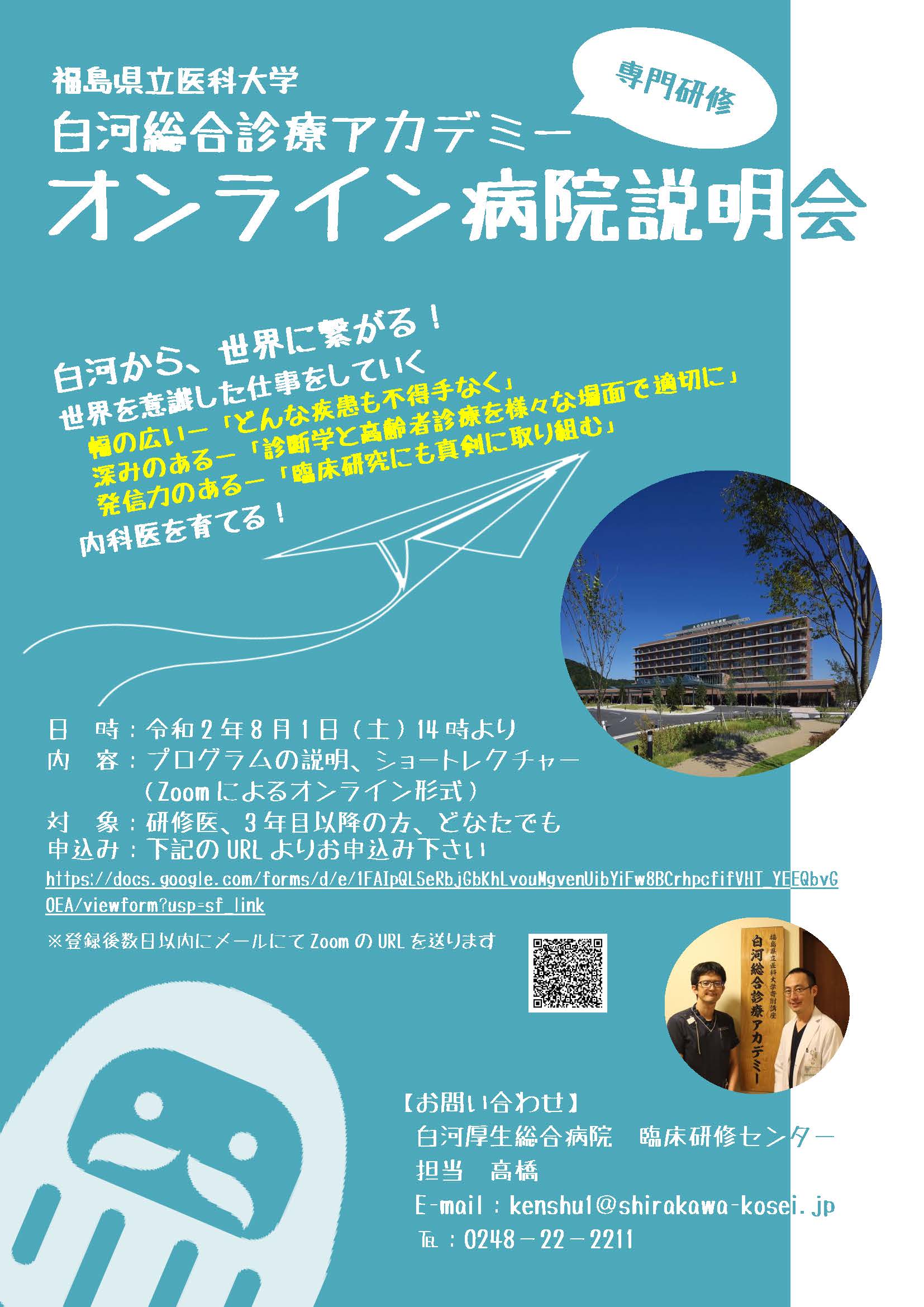 福島県立医科大学 白河総合診療アカデミーは オンライン病院説明会を開催します