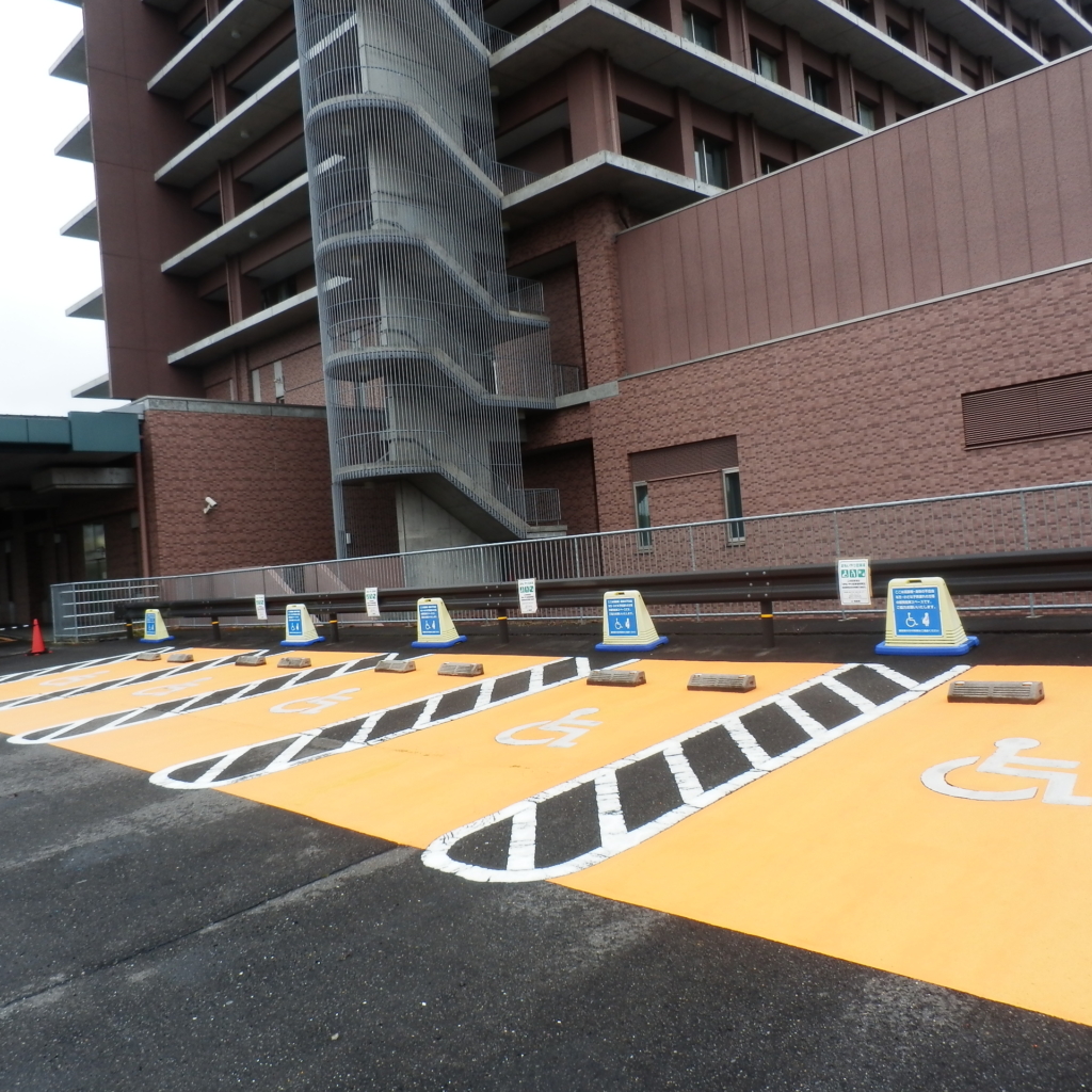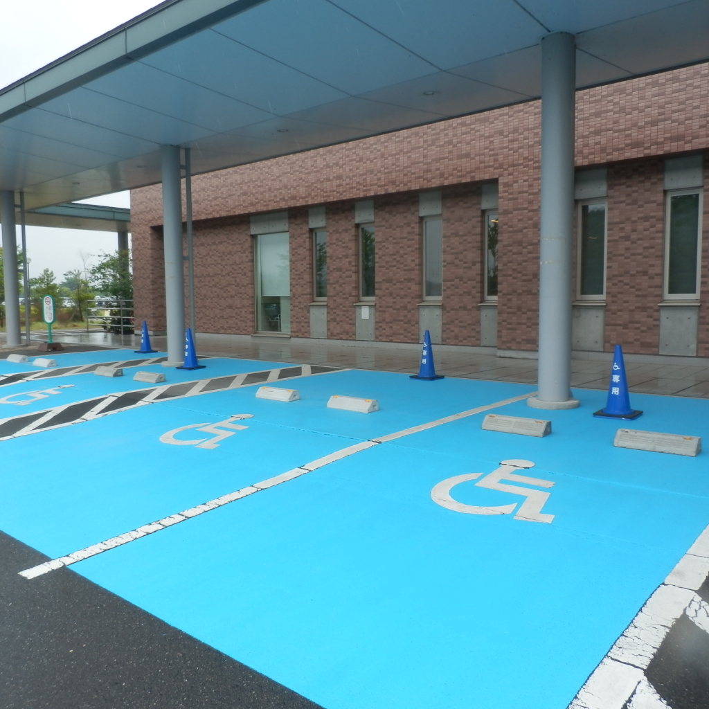 出入口にできるだけ近い位置に、安全に乗り降りができるよう確保された区画になりますので、当駐車場の適正な利用につきまして、皆様のご理解とご協力をお願いいたします。